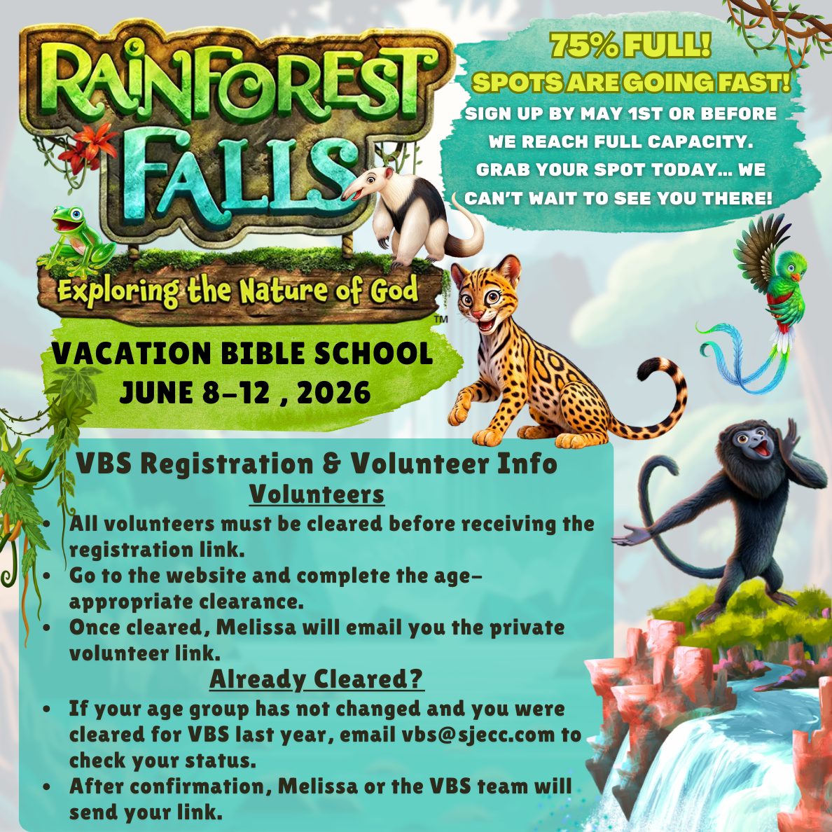 Vacation Bible School: Rainforest Falls 2026