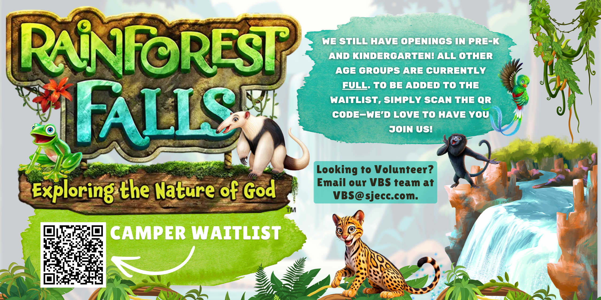Pre-K and Kindergarten camper registration is a two-step process. Please complete the VBSPro link first, then submit your payment through the WeShare link. Your camper’s registration is not complete until both steps are completed. Please contact VBS@sjecc.com for any questions!